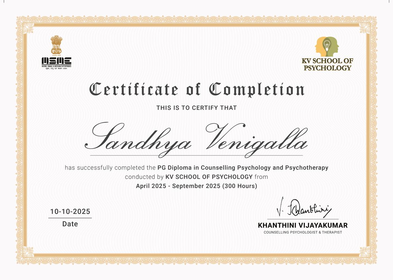 An Internationally Certified Life Coach and Self-Care Coach, she recently completed a Post Graduate Diploma in Counseling Psychology (2025), bringing depth and structure to her emotionally rich coaching process.